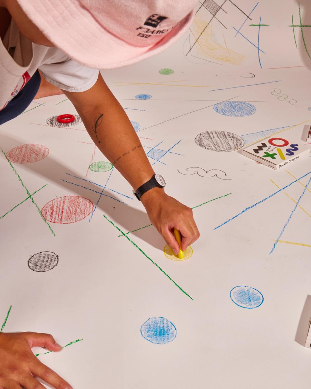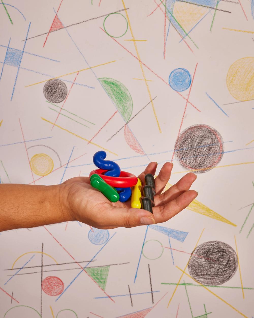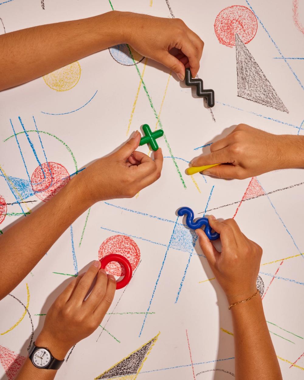 Doodle Crayons ask you to consider how you make art, rather than what you make. Move them this way and that, pull them along on their sides, or push them around flat. Doodle and scribble mindfully or mindlessly to create your own messy musings.