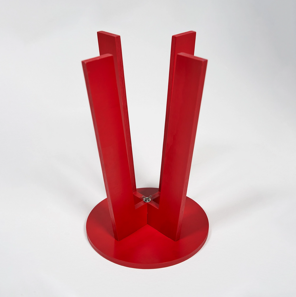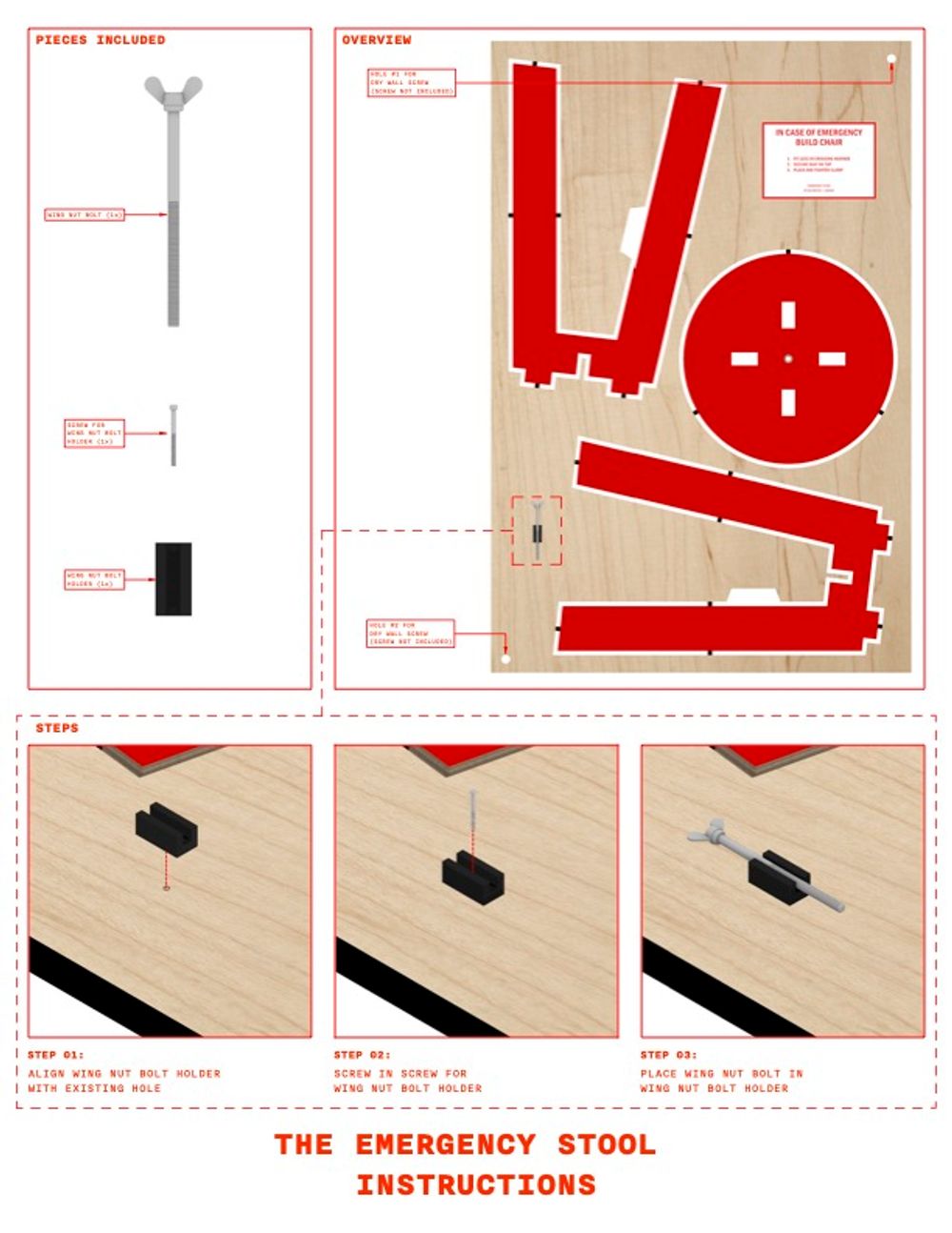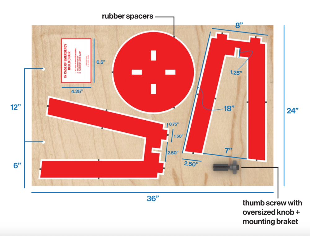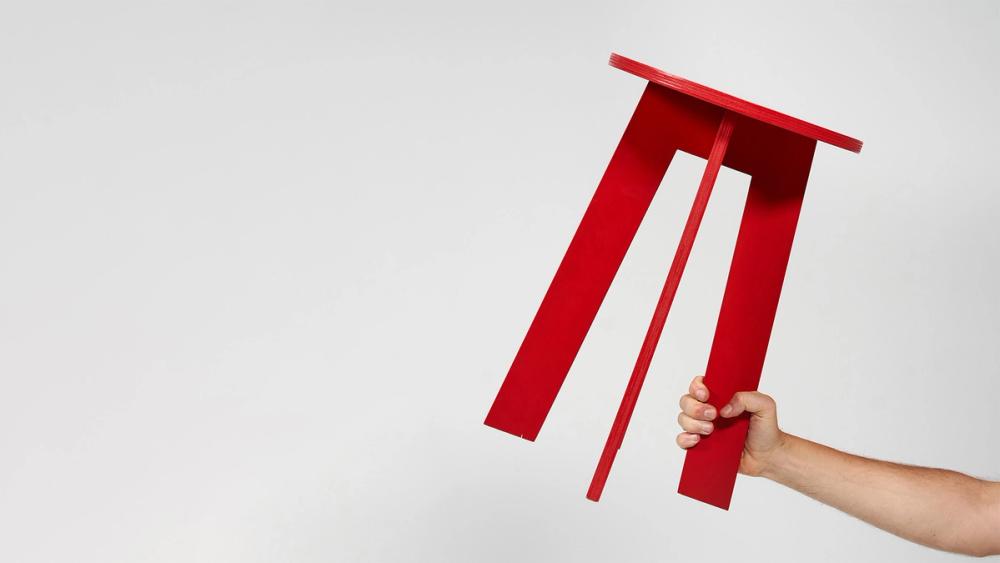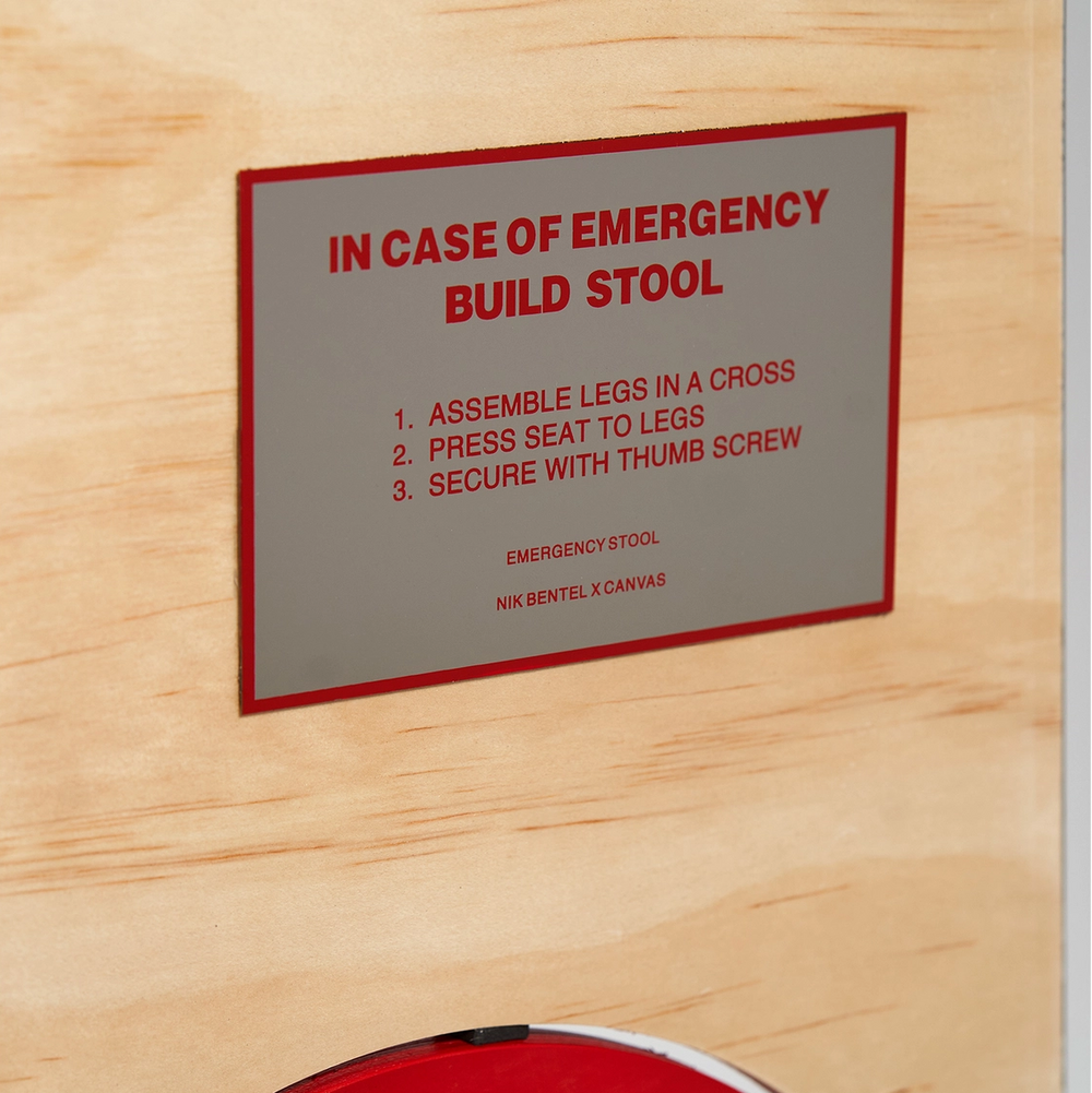 The Emergency Stool is a functional art object, designed in collaboration with CANVAS. Made from a single sheet of plywood and assembled with a single screw.