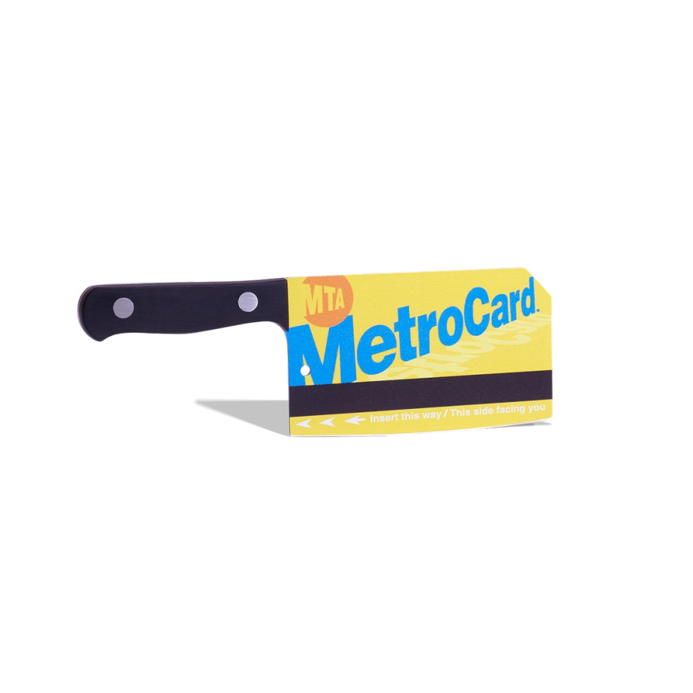 A highly requested item– The Capitalism Knife: Transit Edition is a tribute to the legendary (and sadly nearly obsolete) MTA MetroCard.