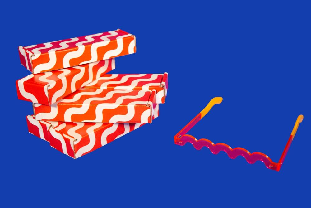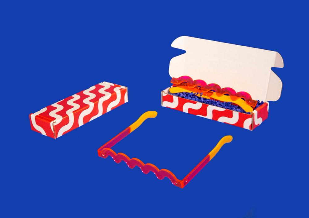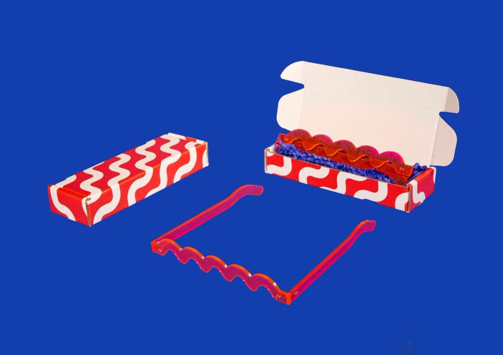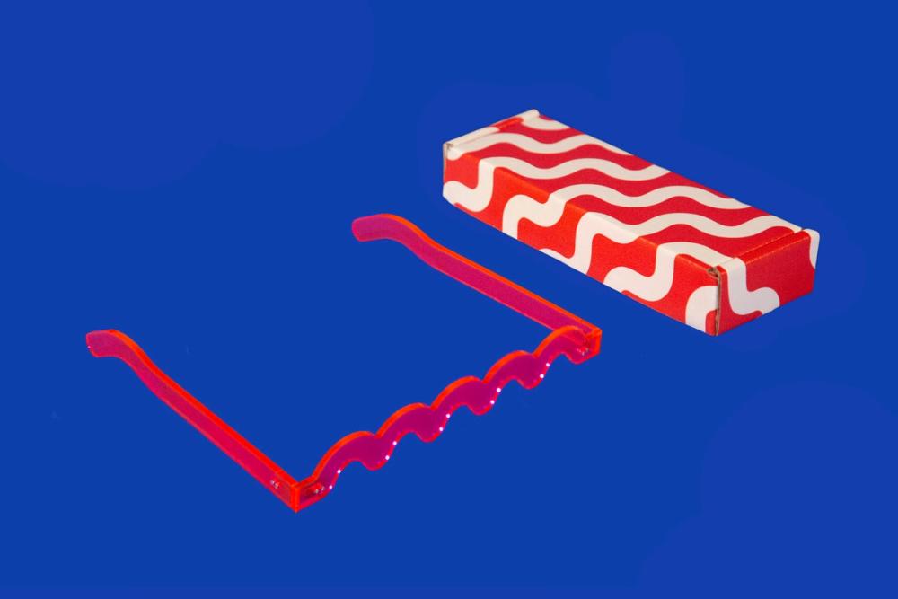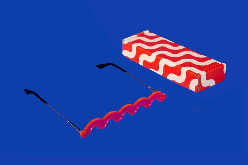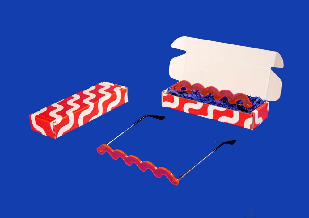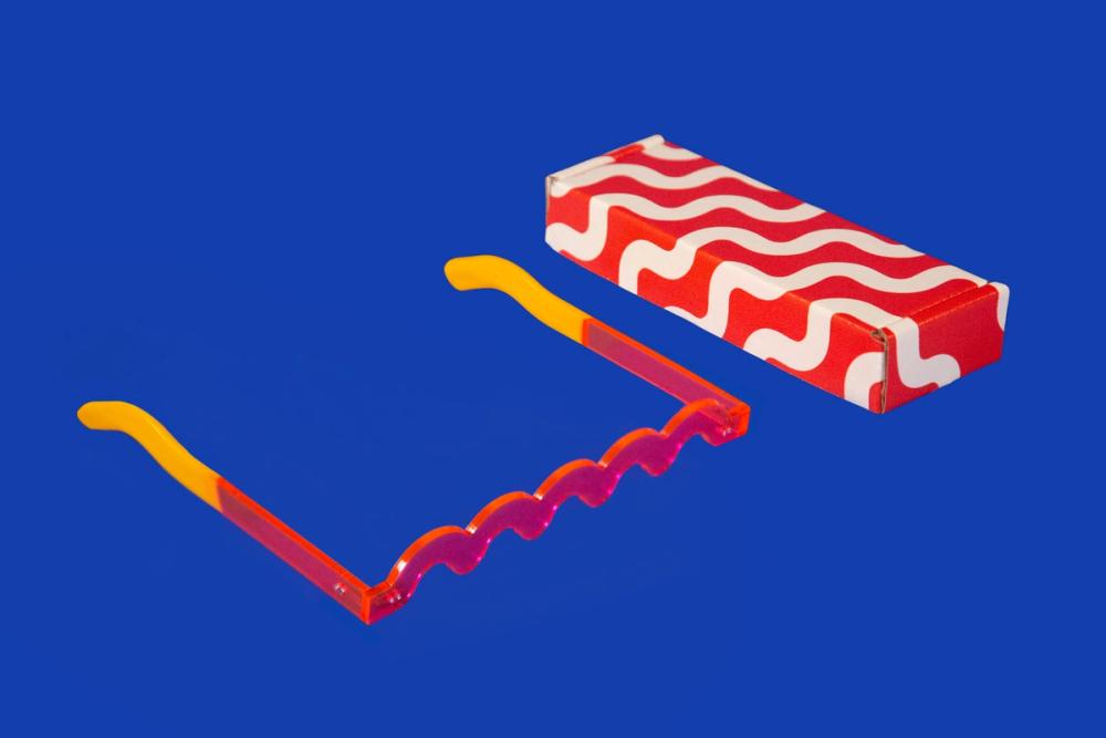 The Squiggle Glasses are shaped like a thin wavy line, partially obstructing the wearer's view rather than improving their vision. This design embodies the idea of a purely aesthetic pair of eyewear. The Squiggle Glasses are purposefully non-functional.