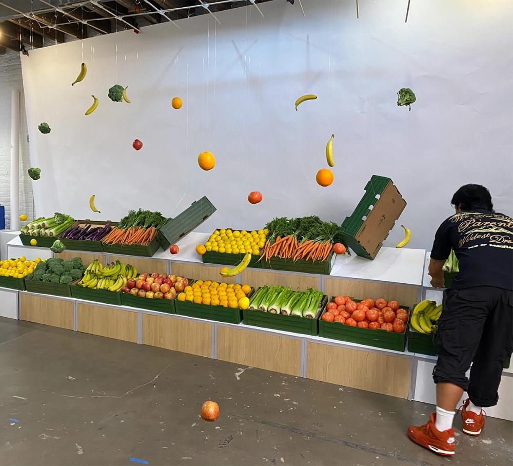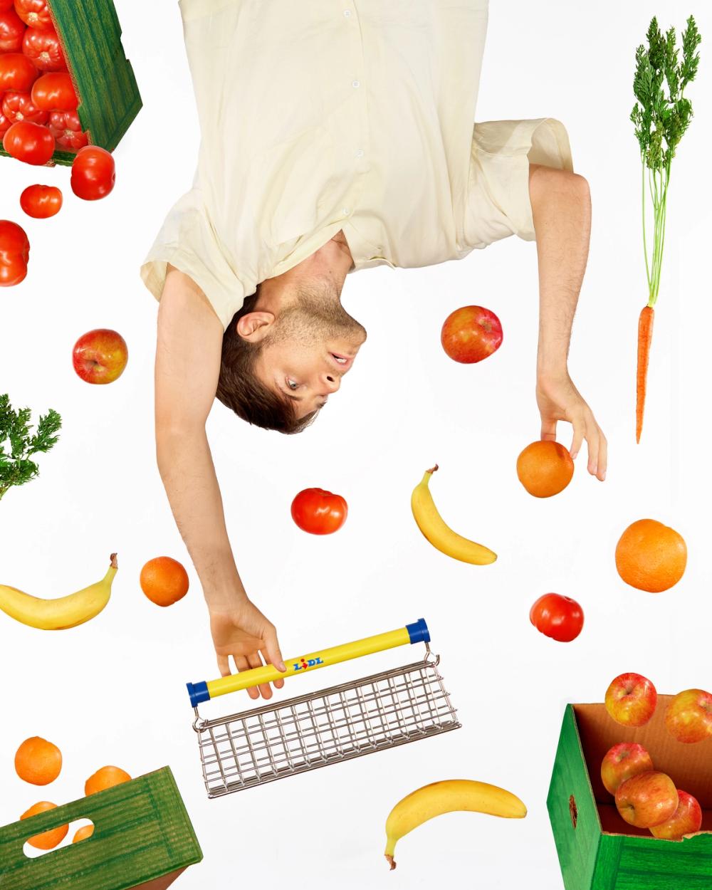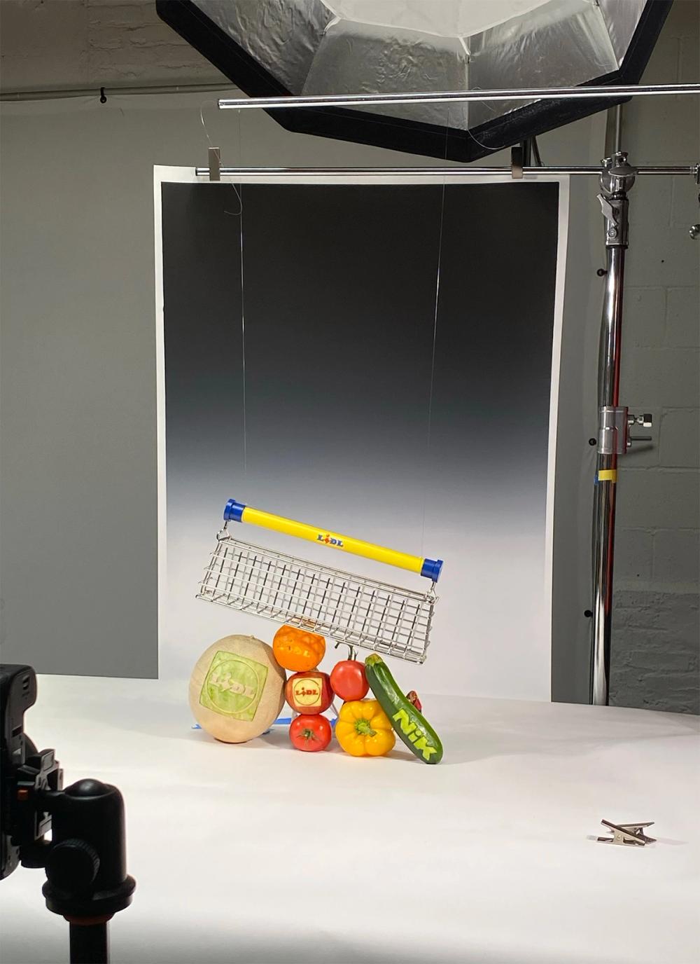 All of the produce featured in our photo campaign is 100% real. We had about 80lbs of fruit and vegetables in the studio, sitting pretty in LIDL crates and hanging from our ceiling rig. All produce was donated to City Harvest after the shoot.