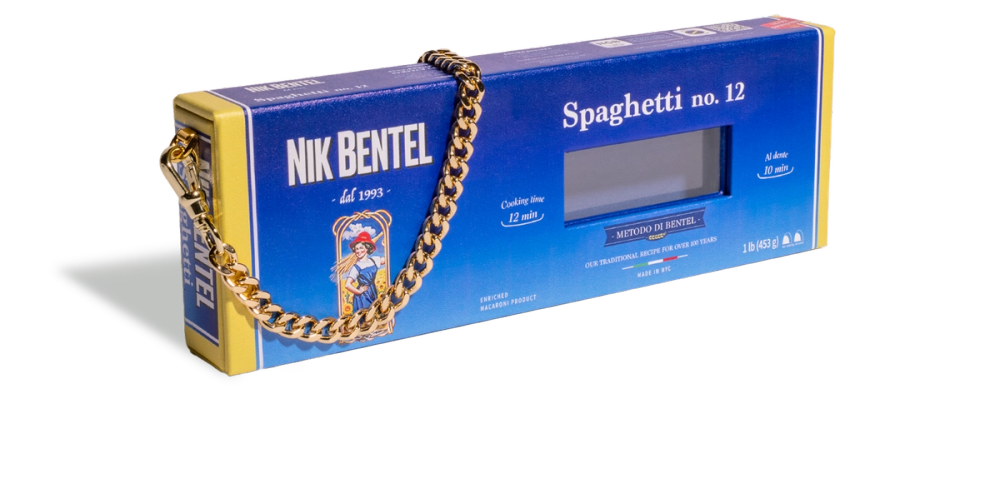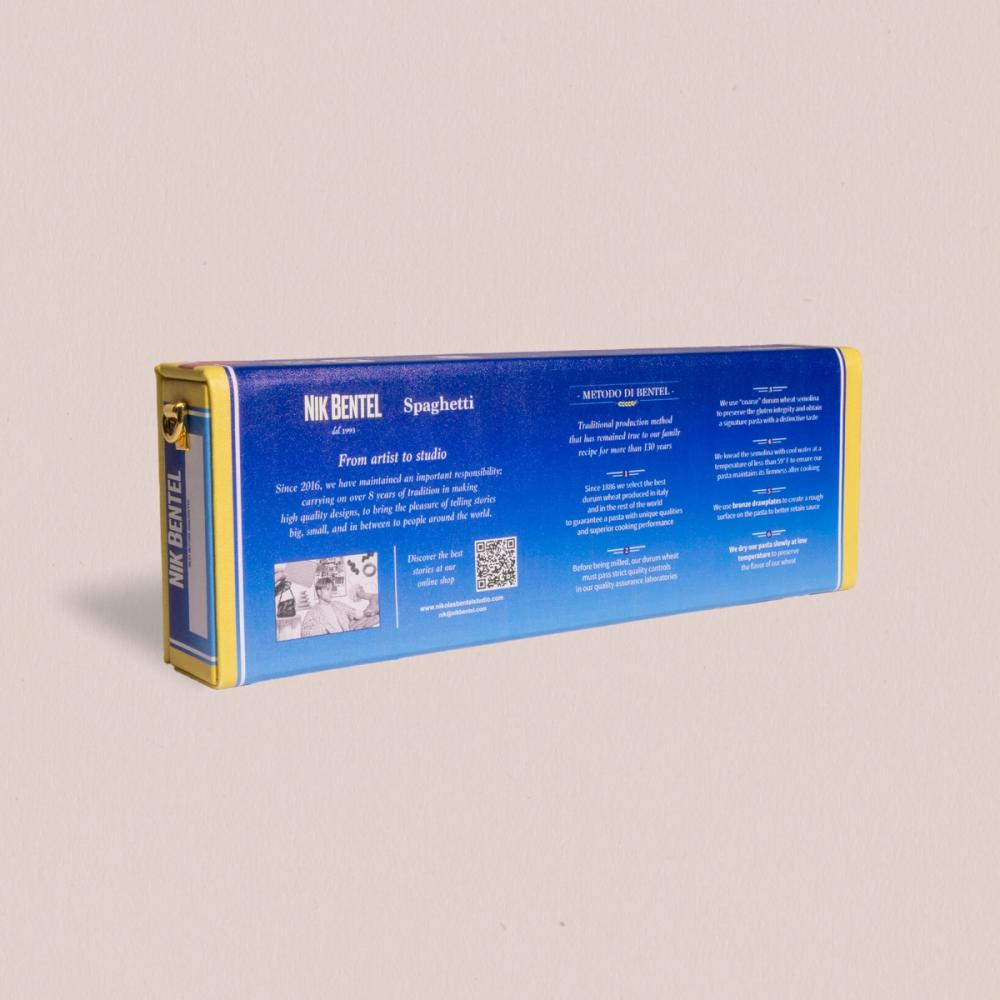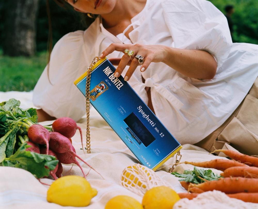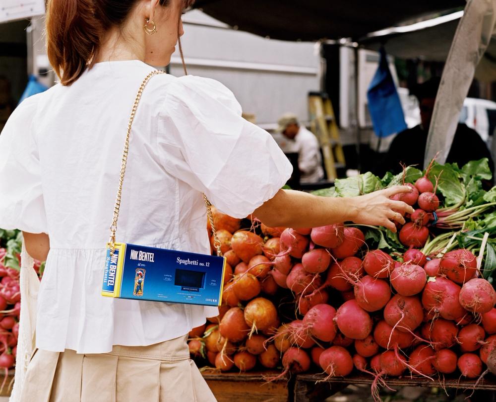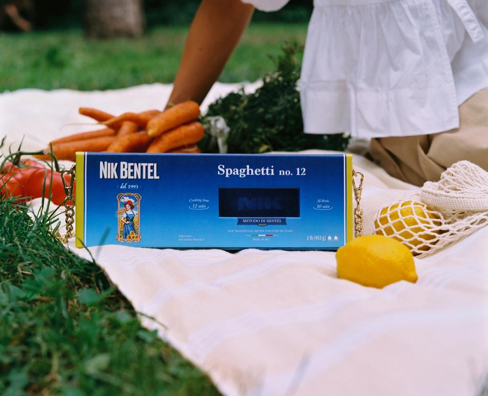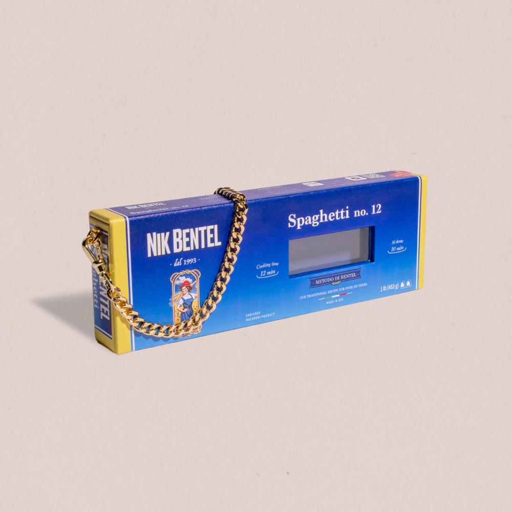 The latest pasta bag from Nik Bentel Studio. A limited edition handbag inspired by the famous spaghetti box.