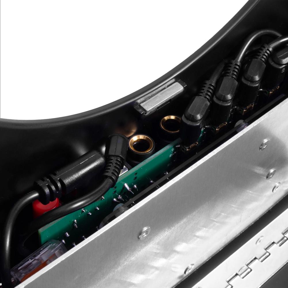 Each bag was made by hand in our studio. They are made from precision-machined colored acrylic, assembled with exposed hardware, and embedded with functioning audio components. The transparent shells allow you to see the internal wiring and construction — a nod to circuit bending and experimental synth design.
