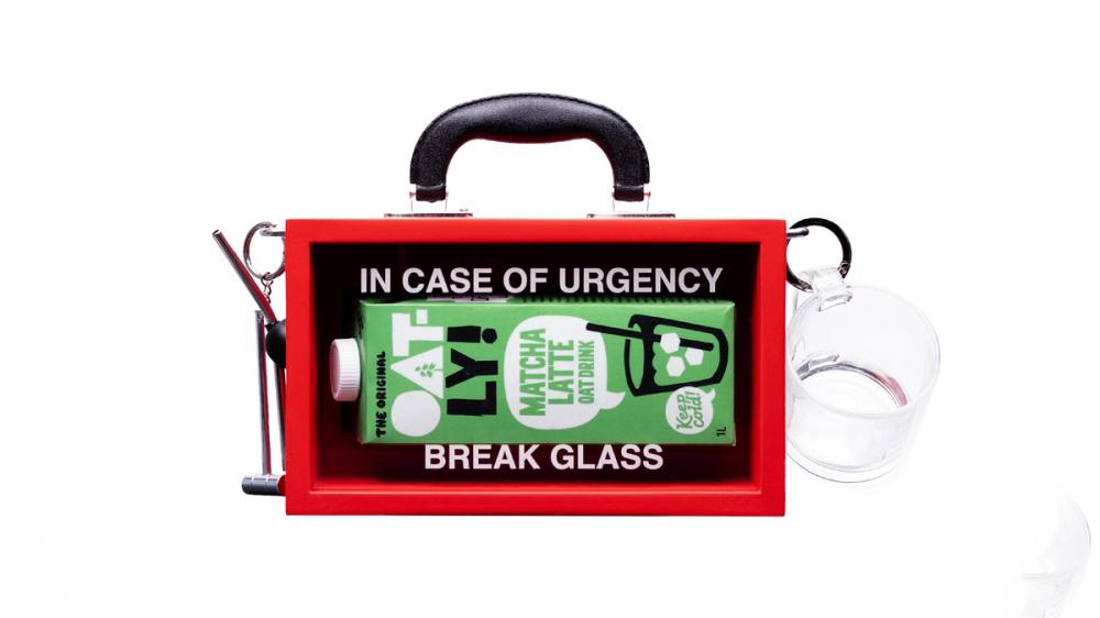A handbag created for Oatly's Matcha. For urgent matcha situations only.