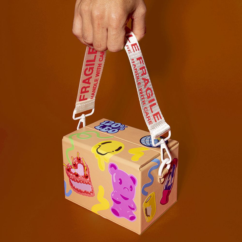 NOV 2023 The fourth and final edition of The Shipping Box Bag. Comes with three sticker sheets and three nylon crossbody straps.