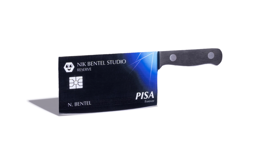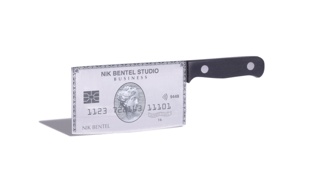 Nik Bentel's credit card knife, now available in Platinum and Sapphire. Limited Edition.