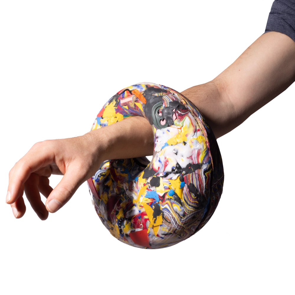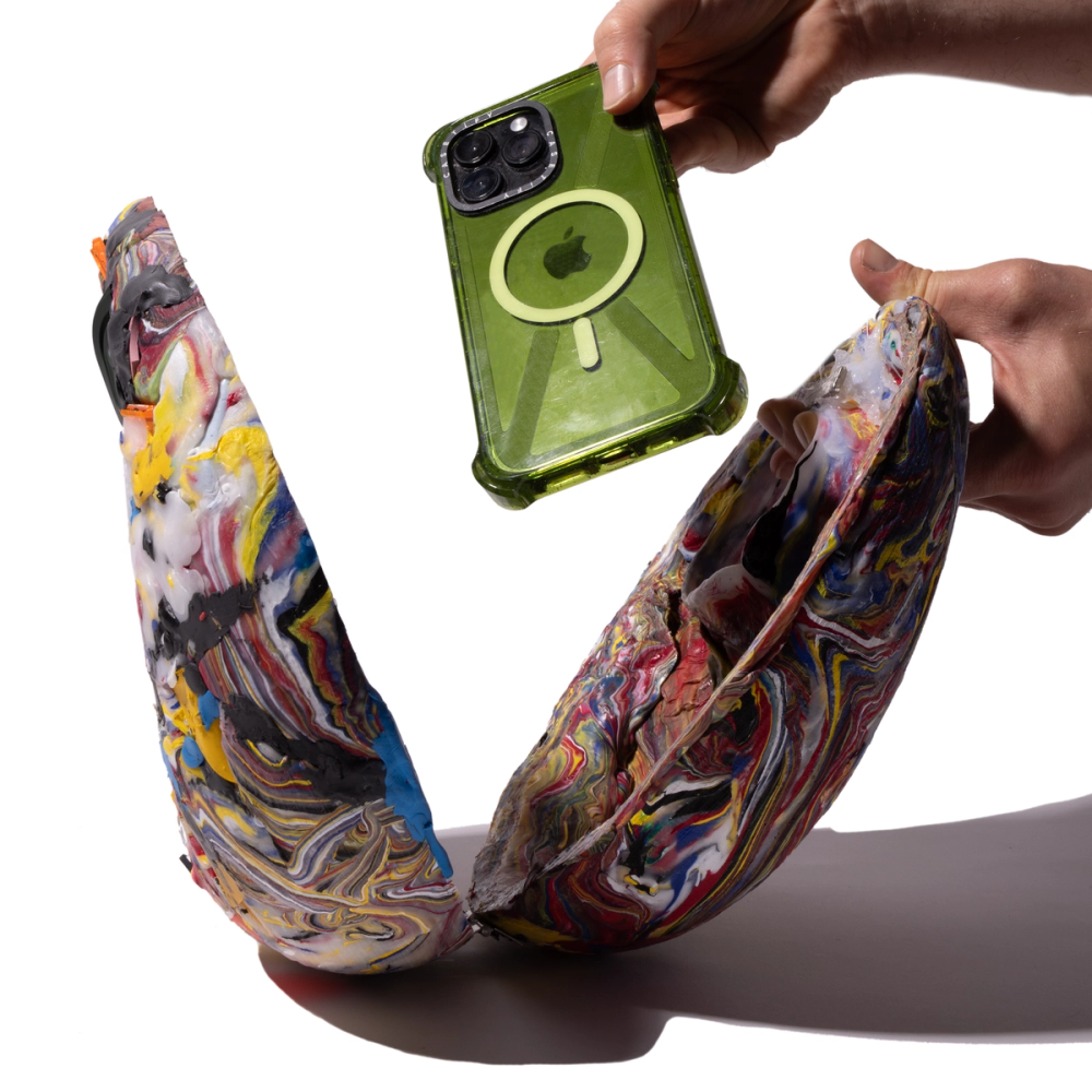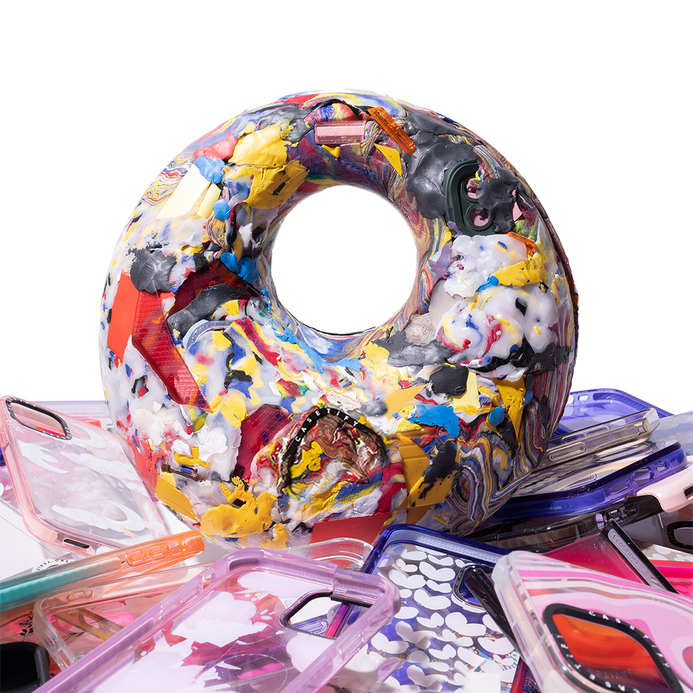 A limited edition handbag created for Casetify primarily using only recycled pieces of their phone cases.