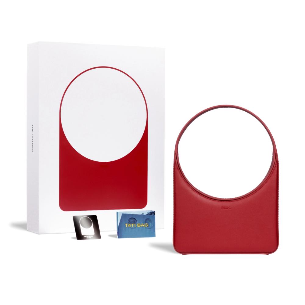 A genuine leather handbag in a brand-new signature silhouette– an ode to French director and visual comedian, Jacques Tati. Available in black, red, and brown.