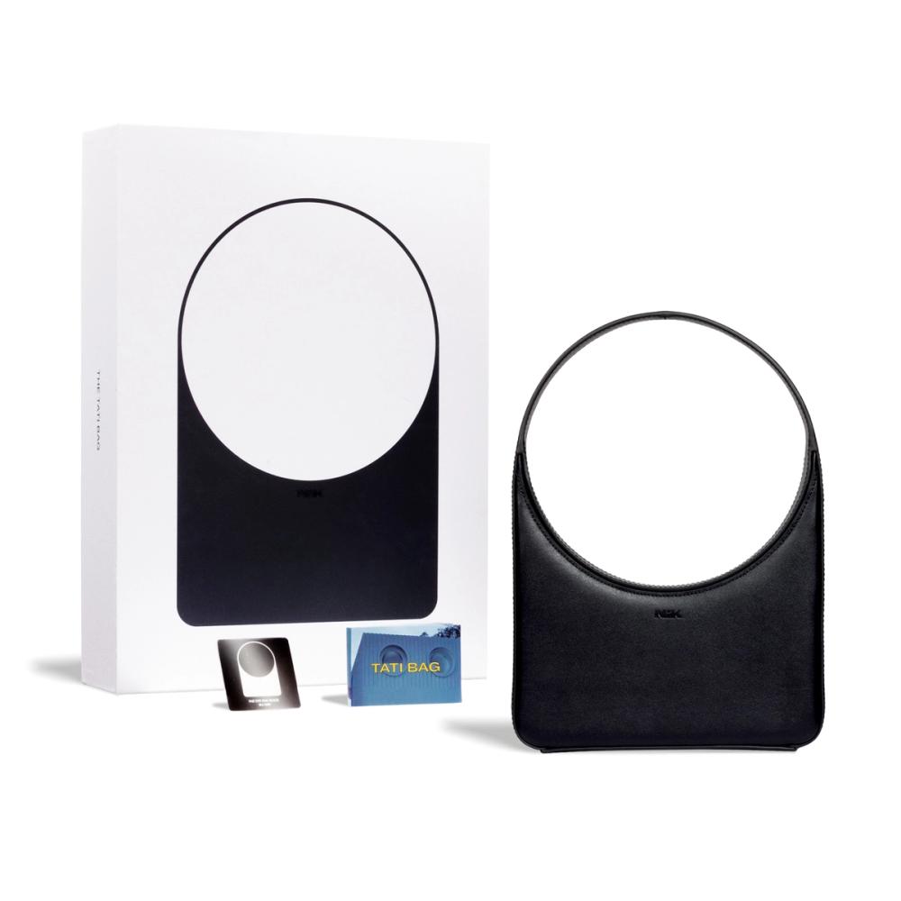 A high quality leather handbag designed with keen attention to detail. Its geometric form is complemented with smooth curves and rounded edges. It features an original leather strap closure rather than a zipper or button. When in use, the closure piece forms a smile or frown shape; a small nod to its dramatic influence. We see this version of the Tati Bag as a baseline–it’s both quiet and loud, a versatile accessory that can be dressed up and down. Easily customizable to fit every person and personality.