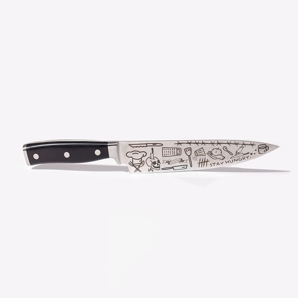 Featuring laser-etched, hand-designed tattoos, this knife represents our effort to make a bold entry into the culinary design space.