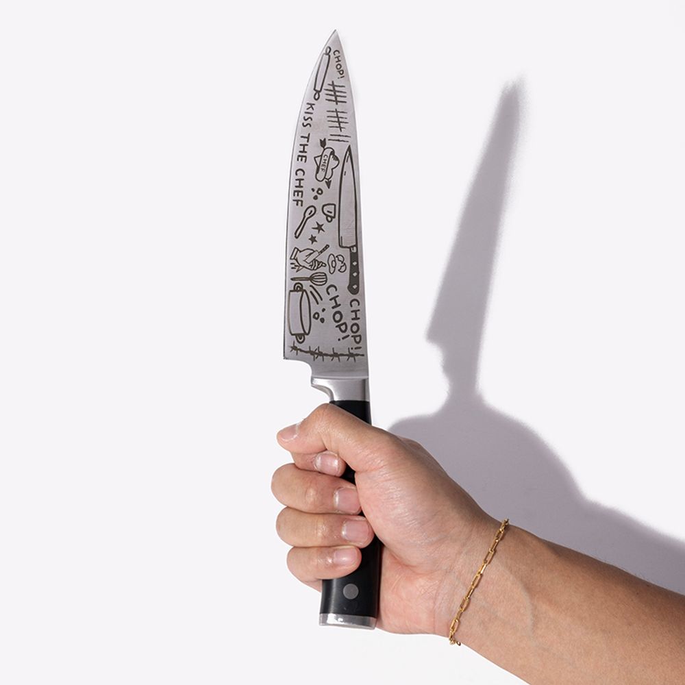 Classic 8" Chef's knife, etched with tattoos. Limited Edition of 100.