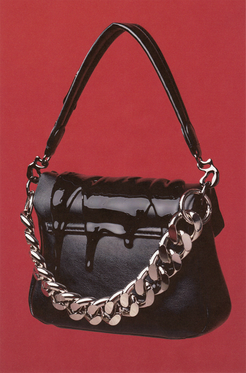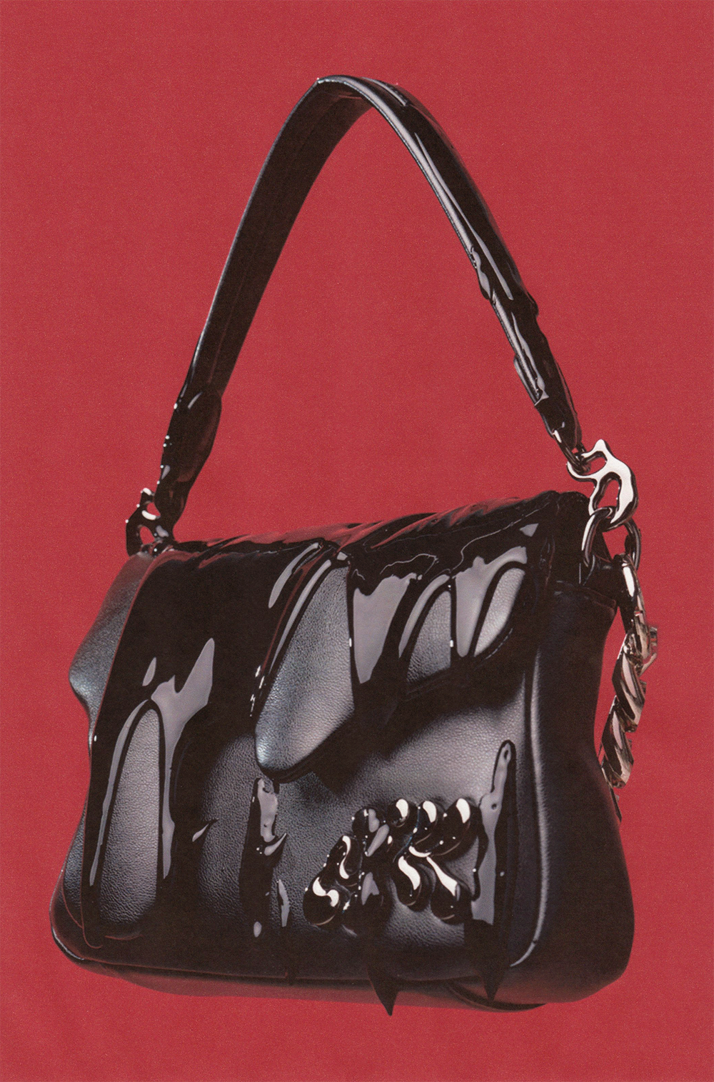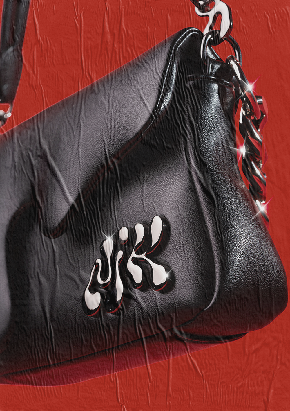 The Ink Bag, the successor to the Drip Bag, takes a bold turn from the original pastel blue design and moves in the opposite direction. Crafted from deep black vegan leather and featuring upgraded black metal hardware, it elevates the bag into the realm of high fashion.
